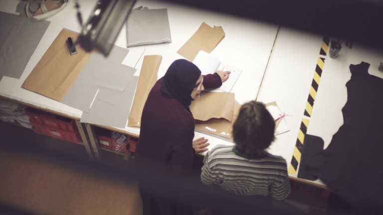 Asiye arbeitet als Anleiterin bei „Bridge&Tunnel“ und ist damit für die Produktionsvorbereitung, den Zuschnitt und die komplette Fertigung verantwortlich. Darüber hinaus verteilt sie im Team die anstehenden Aufgaben. Sie hat in Hamburg Bekleidungstechnik studiert und konnte danach lange keine Arbeit finden.