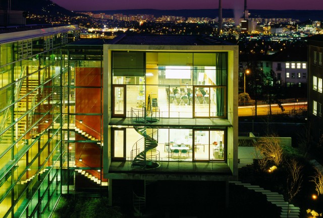 Es begann am 17. November 1846. Der junge Mechaniker Carl Zeiss gründete in der Neugasse 7 in Jena seine eigene Werkstatt, fertigte Lupen und Mikroskope und verkaufte sie an Studenten – mit Erfolg. Innerhalb weniger Jahrzehnte entstand eines der größten deutschen Industrieunternehmen. Als dann auch noch der Physiker und Mathematiker Ernst Abbe an Bord kam, war die thüringische Ideenschmiede nicht mehr zu stoppen. Abbe konstruierte nicht nur Feldstecher und Mikroskope, sondern revolutionierte gleich noch die Unternehmenskultur, führte Arbeitszeitbegrenzung, Mitbestimmung und Gewinnbeteiligung ein. Ähnlichen Gestaltungsdrang erhoffte man sich von den Forschern und Unternehmensgründern, die sich in den letzten Jahren auf dem Jenaer Beutenberg-Campus angesiedelt hatten. Künftig wird es leichter, dem hehren Anspruch zu genügen. Ein neuer Hightech-Komplex samt Bibliothek und Speisesaal hilft beim Ideenfang – das Abbe-Zentrum.