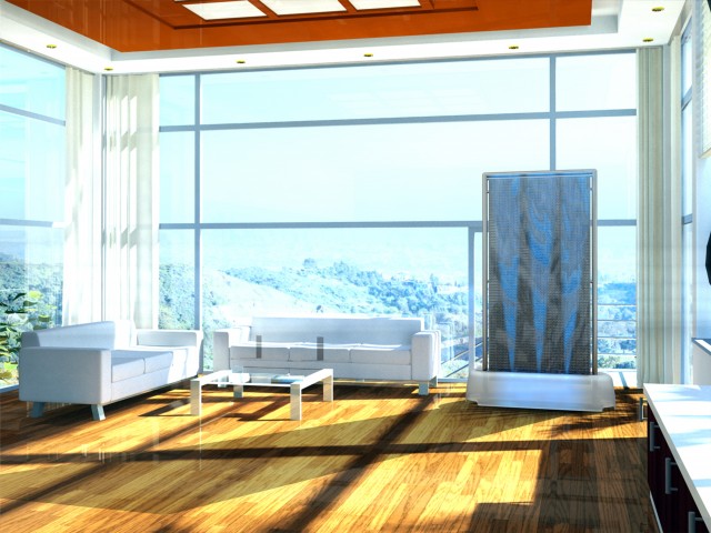 Klimaanlagen sorgen für angenehme Temperaturen. Allerdings haben herkömmliche Geräte auch unerwünschte Nebenwirkungen wie Zugluft, Lärm und einen bisweilen hohen Energieverbrauch. Das Fraunhofer Institut für Bauphysik in Stuttgart hat eine Alternative entwickelt: Der Klimabrunnen nutzt einen gekühlten Wasserfilm zur Temperaturregulierung. Im Gegensatz zu konventionellen Kühlelementen arbeitet die Technik des Klimabrunnens geräuschlos bei niedrigerem Energieverbrauch und wenig CO2-Ausstoß. Der Klimabrunnen kühlt, entfeuchtet und bindet zugleich Staub und Pollen.